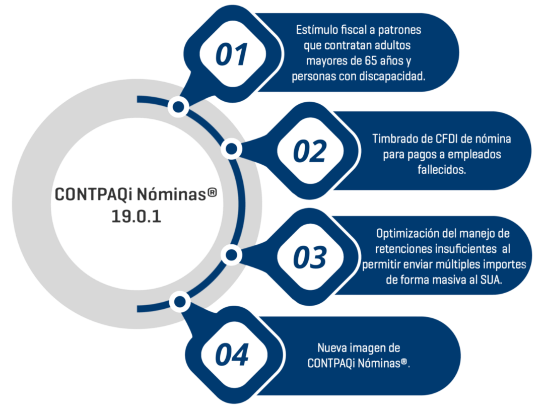 A partir de la versión 19.0.1 de CONTPAQi Nóminas®, podrás disponer de las nuevas características: