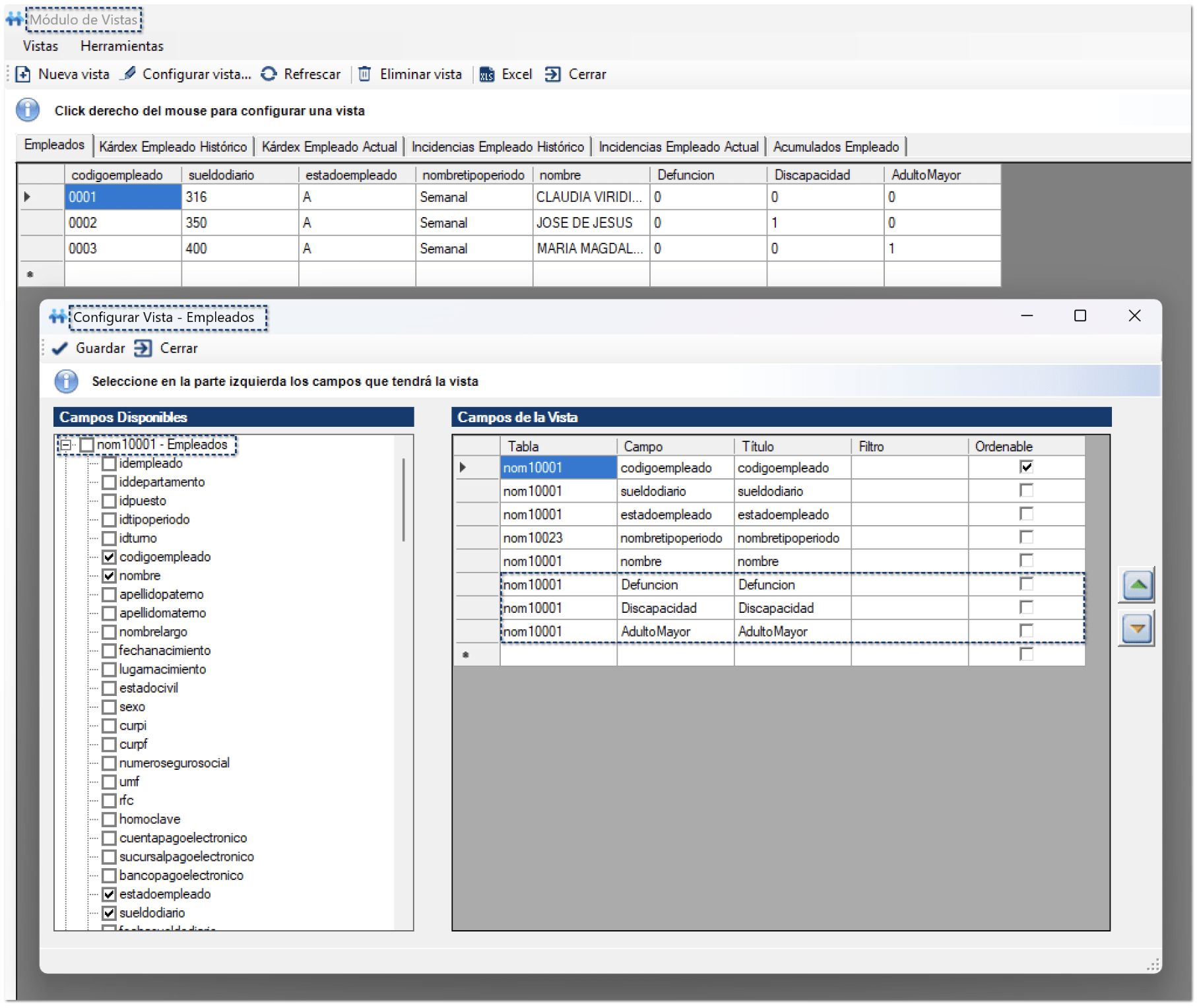Configuración en Catálogo de Empleados