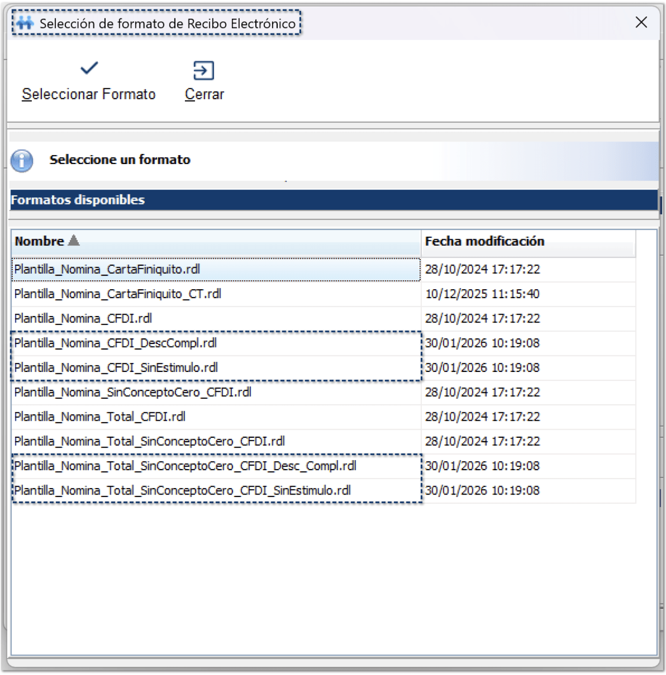 Ahora las plantillas se instalan correctamente de forma automática y los recibos muestran de manera más clara el concepto de cada percepción, facilitando que el trabajador entienda mejor qué pago está recibiendo.