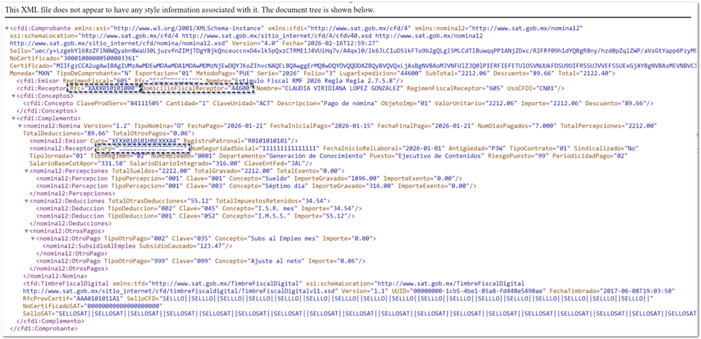 Este comportamiento se encuentra alineado con lo establecido en la Guía de llenado del Complemento de Nómina, la cual indica: