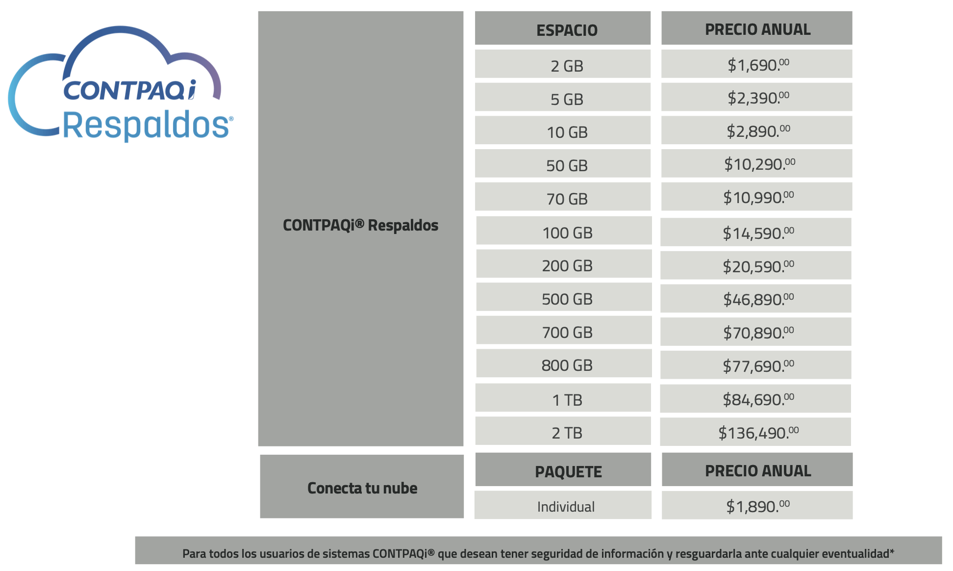 CONTPAQi® Respaldos es exclusivo para usuarios de CONTPAQi® Contabilidad, Bancos, Nóminas y Comercial Premium con versiones mayores liberadas en 2019